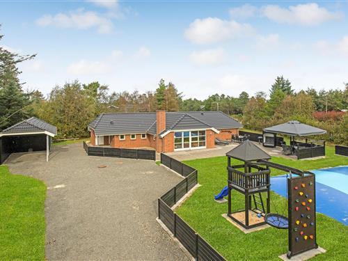 5,0Dieses schöne Ferienhaus liegt auf einem großen Grundstück mit Platz für Ballspiele und andere Aktivitäten im Freien. Das Haus liegt nicht weit von dem schönen Strand an der Nordsee und dem Freizeitpark Fårup Sommerland entfernt. Der Poolbereich des