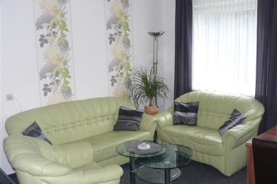 4,0Ferienwohnung 8: im Obergeschoss, modern eingerichtetes Wohnzimmer mit großzügigen Essbereich,Satelliten-TV, Flachbildschirm, CD-Radio. 3 Schlafzimmer, (6 Betten). komplett ausgestatte Küche (Elektroherd mit Backofen, Kühlschrank mit Gefrierfach,