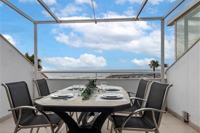 4,6"Luxury Atic Cambrils", 8-Zimmer-Attikawohnung 194 m2 im 6. Stock. Geräumig und hell, vollständig renoviert im Jahre 2024, modern und luxuriös eingerichtet: Wohnzimmer mit Digital-TV. Esszimmer. 1 Zimmer mit 2 Betten (90 cm, Länge 200 cm). 1 Zimmer mit 1