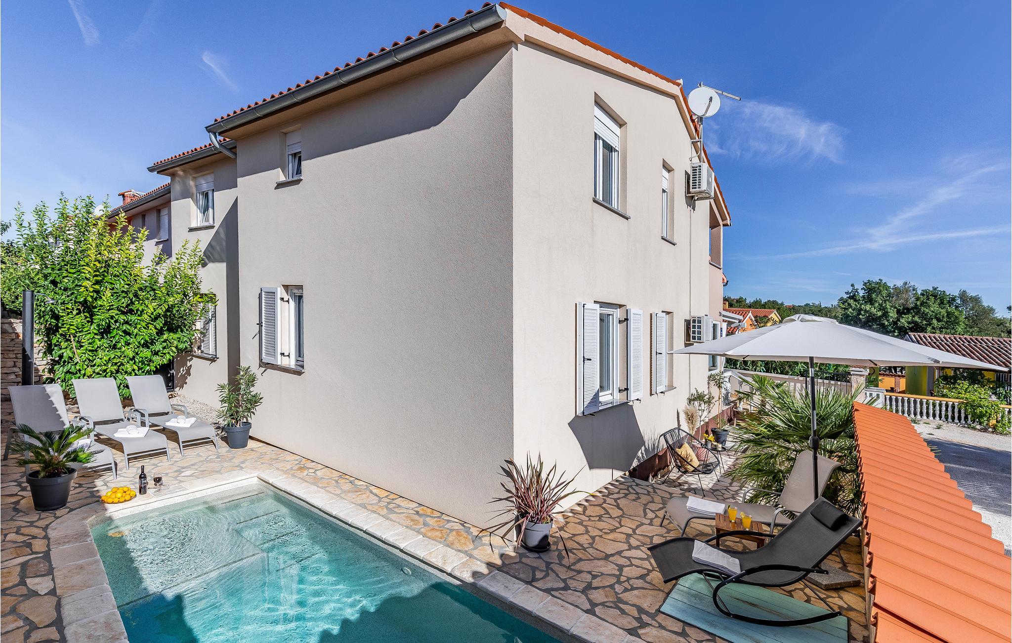4,7Dieses Ferienhaus mit Pool liegt in einem ruhigen Teil von Barbariga. Das Haus besteht aus zwei Wohneinheiten, von denen eine über zwei Schlafzimmer im Obergeschoss und ein Wohnzimmer im Erdgeschoss verfügt. Die andere Wohneinheit verfügt über ein