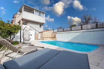 Attraktives Ferienhaus mit Pool, bestehend aus zwei zweistöckigen Wohnungen, gelegen im Küstenort Brodarica, nahe der beliebten Touristenstadt Šibenik. Es ist ideal für Familien, die gemeinsam einen Urlaub verbringen und dabei trotzdem die Privatsphäre