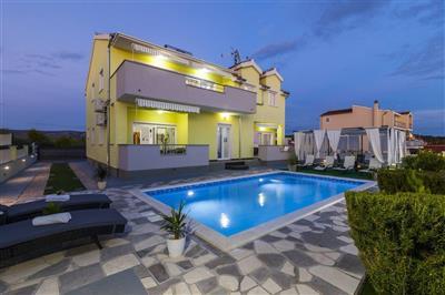 MY DALMATIA - Sea view Villa Brodarica Haus: Hier finden Sie Komfort, Privatsphäre und eine perfekte Lage, alles in einem! Diese wunderschöne Villa mit privatem Pool und großem Wellness-Bereich liegt in Brodarica, einem ruhigen Vorort, nur 300 m vom Strand