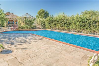 Genießen Sie lange Sonnenstunden und mediterranes Ambiente in diesem geräumigen Ferienhaus mit Pool nahe der Küste. Nur einen kurzen Spaziergang vom Sandstrand entfernt, heißt Sie dieses charmante Feriendomizil willkommen. Fühlen Sie sich in den hellen