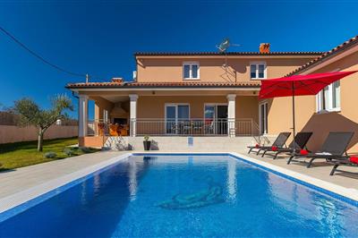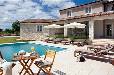 Diese wunderschöne Villa wurde mit Liebe und Sorgfalt gestaltet und bietet ihren Gästen einen tollen Urlaub. Der typisch istrische Stil zeigt sich in vielen Details. Der traditionelle Stil, der Stein und Holz verbindet, hebt den architektonischen Wert der