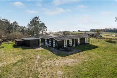 3,0Gemütliches Ferienhaus auf einem gut 1.200 m2 großen Naturgrundstück mit schützenden Büschen und Bäumen ringsum. Steht nur etwa 270 m von Meer und Küste bei Falsled. Der Wohnbereich hat eine offene Zimmerdecke bis zum First und wirkt so besonders hell und