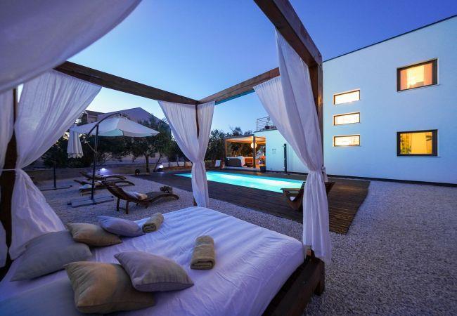 Haus 22250 im Ort Sukošan, Zadar - Norddalmatien ist 10 m vom Meer entfernt. Der nächste Strand zu dieser Unterkunft ist ein Betonplatten. Dieses Haus befindet sich in der Kategorie "Luxusvillen". Das Objekt besitzt keine anderen Appartements, somit werden