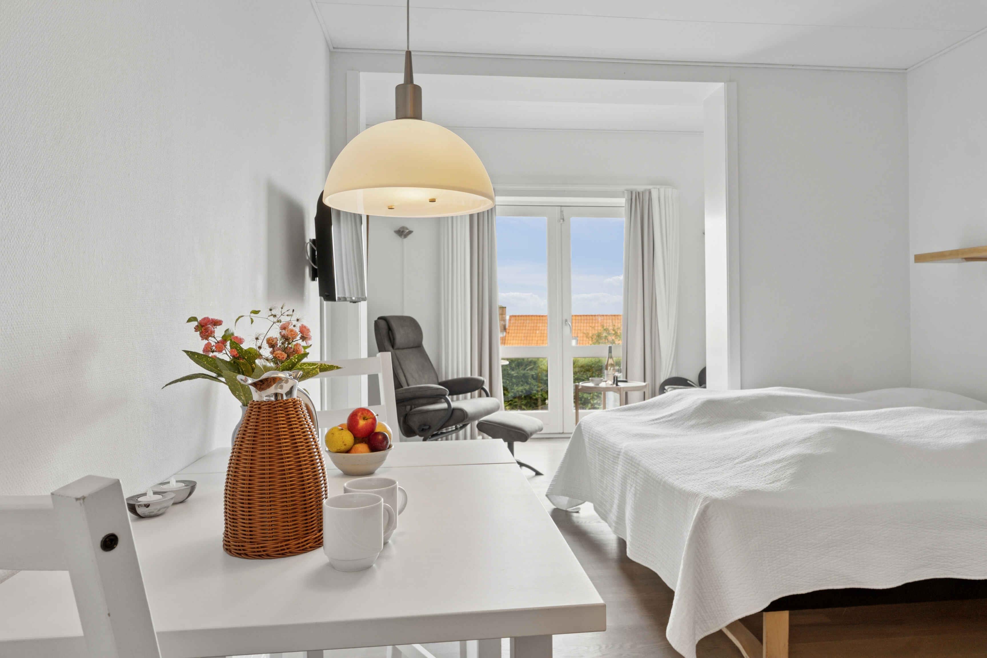 Informationen zur Ankunft werden 4 Tage vor der Anreise per Nachricht gesendet Pension Koch, Wohnung 6 Ferienwohnung für 2 Personen – mit Meerblick in Gudhjem Dieses gemütliche Studio-Apartment liegt erhöht in Gudhjem und bietet einen wunderschönen Blick