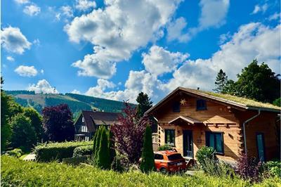 Blockhütte im Harz mit Sauna und Kamin Haus: Mitten im malerischen Hahnenklee im Oberharz bieten diese stilvollen Blockhäuser aus echten Blockbohlen ein besonders behagliches Wohngefühl. Die freistehenden Ferienhäuser (Neubau 2018) im modernen
