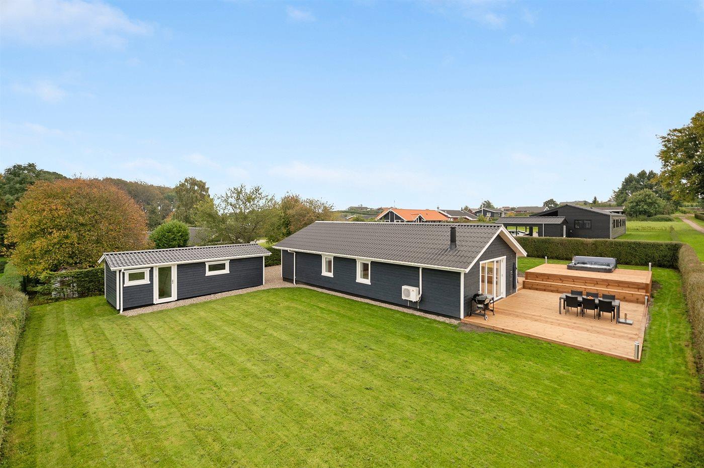 5,0Von einem Architekten gezeichnetes, exklusives Ferienhaus, hoch auf einem phantastischen Gartengrundstück mit einer besonders hübschen Panoramaaussicht über den Kleinen Belt sowie den Segelboothafen in Hejlsminde gelegen. Beheizbare italienische Klinkerböden