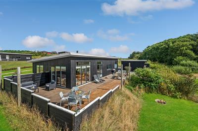 3,0Mit einem phantastischen Panoramablick auf den Limfjord finden Sie dieses Ferienhaus in landschaftlich schöner Umgebung. Das Haus liegt hoch, auf einem 1200 m² großen Naturgrundstück, in einem leicht hügeligen Gebiet. Von der sehr großen Terrasse des Hauses
