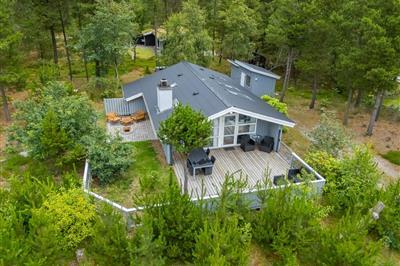 4,0Idyllisch gelegen auf leicht hügeligem, bewachsenem Naturgrundstück Dieses rustikal eingerichtete Ferienhaus aus Holz liegt auf einem ungestörten Naturgrundstück, umgeben von Bäumen. Eine teilweise überdachte Terrasse mit Gartenmöbeln lädt zum Verweilen im