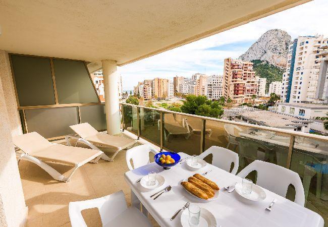 Beschreibung Schöne Strandwohnung mit Gemeinschaftspool in Calpe (Costa Blanca) für 5 Personen, mit drei Schlafzimmern und zwei Bädern. INNENAUSSTATTUNG: Diese wunderschöne Wohnung besteht aus einem Wohn-Esszimmer mit SAT/TDT-TV und Zugang zur Terrasse mit