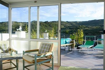 4,3"Sorei", 3-Zimmer-Wohnung 80 m2 im 1. Stock. Hell, schön und gemütlich eingerichtet: Wohn-/Schlafzimmer mit 1 Doppeldiwanbett (160 cm), Sat-TV. Ausgang zur Terrasse. 1 Zimmer mit 1 franz. Bett (160 cm). Ausgang zur Terrasse. 1 Zimmer mit 2 Betten. Küche