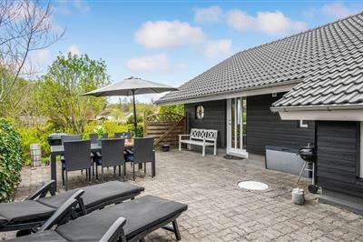 3,8Willkommen in einem schönen und gepflegten Ferienhaus, das bis unter den First offen ist. Im großen Wohnzimmer, in offener Verbindung mit der Küche, sorgen große Fenster für herrlichen Lichteinfall. Das Haus ist modern eingerichtet, im skandinavischen Stil,