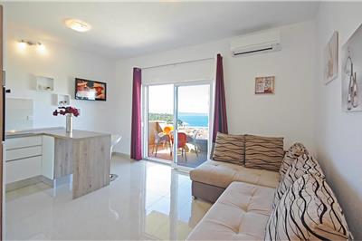 5,0Auf einer Anhöhe über dem Stadtzentrum von Makarska befindet sich dieses Doppelhaus, das Ihnen einen komfortablen Urlaub bietet. Im Erdgeschoss befinden sich ein Freizeitraum, Bad sowie die Sommerküche mit Kamin und überdachter Terrasse. Über Außentreppen