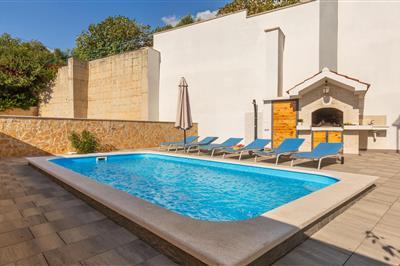 Erholen Sie sich in diesem einzigartigen Steinhaus, das sich wunderschön in die Bergwelt mit Infinitypool einfügt. Mit atemberaubender Panoramablick auf die dalmatinische Küste und die vorgelagerten Inseln erwartet Sie in der luxuriösen Villa 2M. Umgeben von