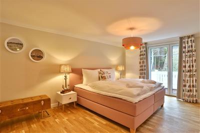 4,8Ferienwohnung Flieder: Ruhige Lage, nur 500m vom Naturstrand entfernt Wohnung 1, im ersten Obergeschoss gelegen, bietet auf 32 m² ein offenes, lichtdurchflutetes Wohnzimmer mit integrierter Küchenzeile und Essecke. Das gemütliche Schlafzimmer ist mit einem