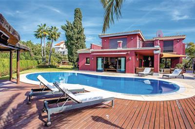 4,0Im exklusiven Küstenort Elviria bei Marbella, finden Sie diese fantastische Ferienvilla mit einem traumhaften Poolbereich und einer tollen Veranda, wo Sie abends gemütlich ein paar Drinks genießen können. Die Villa bietet 6 großzügige Schlafzimmer, die Träume