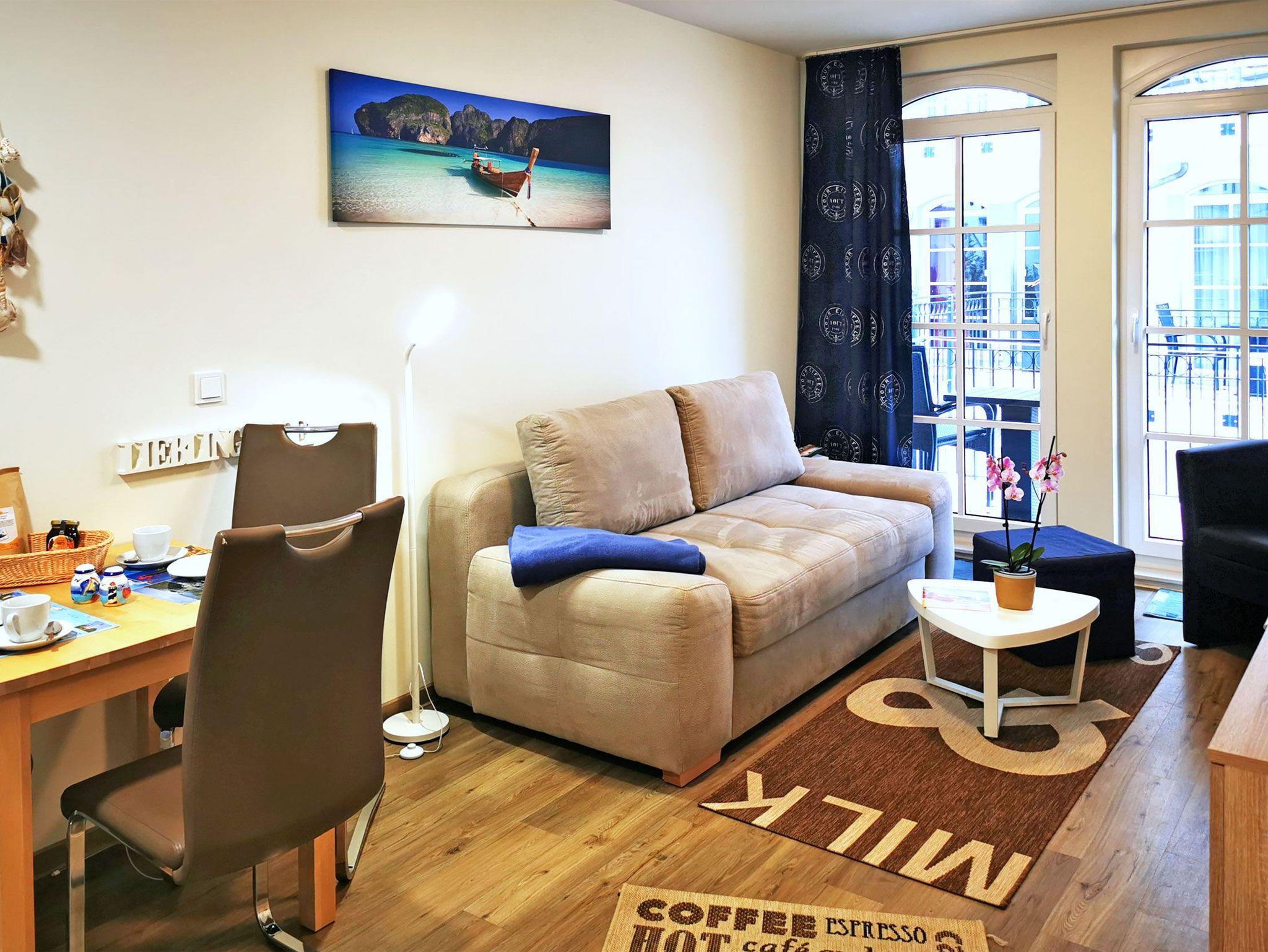 FeWo Seestern A 0.01 Ref 128659 u 1, Ferienwohnung Seestern A 0.01 Die gemütliche Ferienwohnung für 3 Personen mit WLAN und 2 Flachbildfernsehern liegt im Haus Meeresblick, eine 2013 fertiggestellte Ferienresidenz mit einem direkten Zugang zum Strand. Das