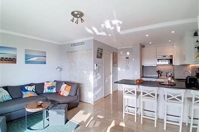 4,01-Zimmer-Studio 30 m2 im 5. Stock, Südwestlage. Komfortabel und modern eingerichtet: Wohn-/Schlafzimmer mit 1 Wandschrankbett (160 cm, Länge 200 cm), TV und Flachbildschirm. Ausgang zur Terrasse. Offene Küche (Geschirrspüler, 3 Induktionskochplatten, Toaster,