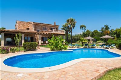 4,4S'hort Villa mit privatem Pool Haus: Eingebettet in die wunderschöne ländliche Gegend von Felanitx bietet diese voll ausgestattete Villa, S'hort d'Or, einen komfortablen Rückzugsort für bis zu sechs Gäste mit Blick auf die Berge und den Garten sowie