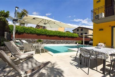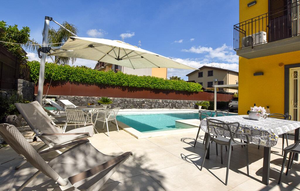 4,5Elegantes Reihenhaus mit privatem Pool in San Giovanni la Punta, zwischen Catania und dem Ätna. Trauen Sie Ihren Augen, wenn Sie mit Ihrer Familie dieses großartige Ferienhaus betreten. Es erwartete Sie nicht nur viel Platz auf zwei Etagen. Nein, Sie werden