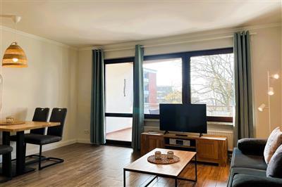 Ferienwohnung mit Balkon und Sauna nahe Strand