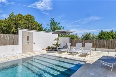 Verbringen Sie wunderschöne Urlaubstage in diesem Ferienhaus mit Pool und nah am Strand. Dieses Haus empfängt Sie mit einem mediterranen Ambiente, in dem sichtbare Holzbalken, viel Licht und rustikales Mobiliar eine einladende Atmosphäre schaffen. Genießen