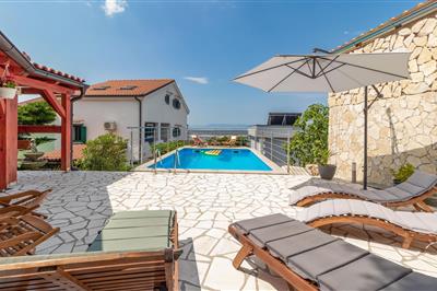 4,0Willkommen in diesem gemütlichen Ferienhaus für einen herrlichen Urlaub in Meeresnähe. Das große, geräumige Ferienhaus erstreckt sich über 2 Etagen und ist wunderschön auf einem Hügel in der kleinen Stadt Klanfari, in der Nähe von Crikvenica, gelegen. Das