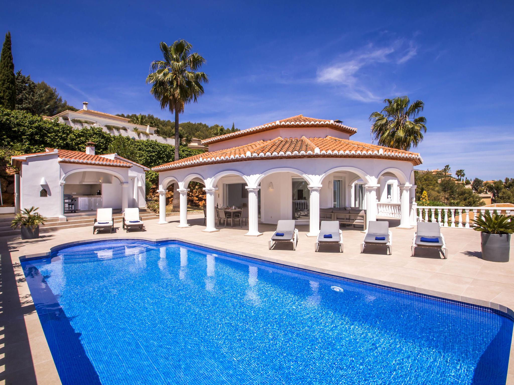4,4"Villa Alta Vista", 4-Zimmer-Villa. Geräumig und hell, sehr schön und geschmackvoll eingerichtet: Wohn-/Esszimmer mit Sat-TV, Flachbildschirm, Klimaanlage und Warmluftheizung. Ausgang zur Terrasse, zum Gartensitzplatz, zum Schwimmbad. 1 Zimmer mit 1 franz.