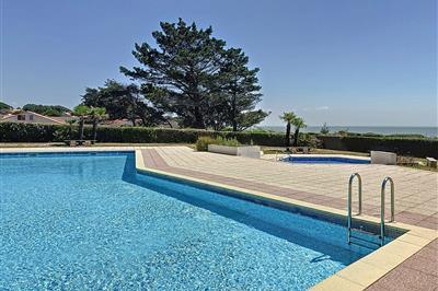 4,8"Indigo-Vue Mer et Piscine chauffée", 4-Zimmer-Reihenhaus 136 m2. Komfortabel eingerichtet: Wohn-/Esszimmer mit offenem Kamin, Esstisch, Sat-TV und Internationale TV-Sender. Ausgang zur Terrasse, zum Schwimmbad. 1 Zimmer mit 1 franz. Bett (160 cm, Länge 200