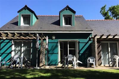 3,6"Cottage Confort", 2-Zimmer-Reihenhaus 39 m2 auf 2 Stockwerken. Zweckmässig und schön eingerichtet: Wohnzimmer mit 1 Ausziehbett (2 Pers. 2 x 80 cm, Länge 190 cm), Essecke und TV. Ausgang zur Terrasse. Kochnische (Geschirrspüler, 4 Glaskeramikplatten,