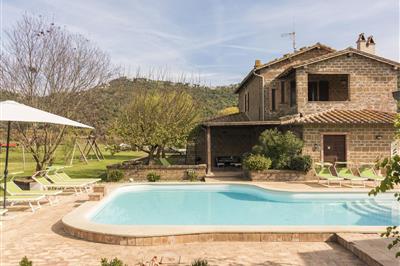 4,4Villa am Bolsena-See mit Pool Haus: Eingebettet in einen üppig bewachsenen Hang mit weitem Blick auf den Bolsenasee und die toskanisch-umbrische Landschaft, bietet diese bezaubernde Villa einen einladenden Rückzugsort für große Familien, Freundesgruppen und