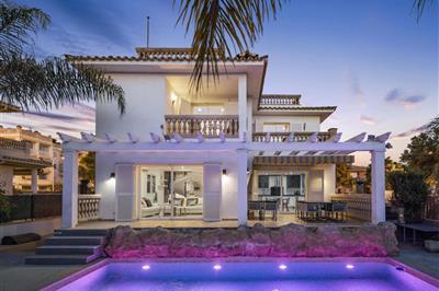 5,0"Vistamar", 5-Zimmer-Villa 320 m2 auf 3 Stockwerken. Objekt geeignet für 8 Erwachsene. Geräumig und hell, sehr komfortabel und stilvoll eingerichtet: offenes grosses Wohn-/Esszimmer mit Panoramafenster mit offenem Kamin (nur Deko), Esstisch, Digital-TV,