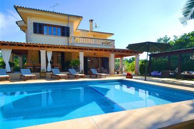 44422 - Nice Mallorca Villa Nice Mallorca ist eine großzügige Villa für bis zu 10 Personen + 1 Baby mit 5 Schlafzimmern, 3 Badezimmern, voll ausgestatteter Küche und Wohnzimmer mit Kamin. Sie bietet einen privaten Pool, Garten mit Grill, Terrasse, kostenloses