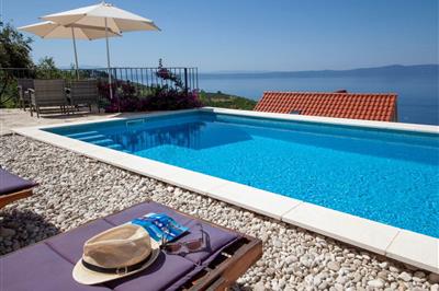 5,0Auf einer Anhöhe des Ortes Podgora, unterhalb des Naturparks Biokovo, befindet sich dieses mit Geschmack eingerichtete Ferienhaus mit Pool. Es besteht aus Erdgeschoss, 1. und 2.Stock, alles mit Außentreppen. Im Erdgeschoss und 1.Stock liegen je eine Küche mit
