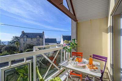 4,02-Zimmer-Wohnung 30 m2 im 1. Stock, Südlage. Schön eingerichtet: Wohnzimmer mit Esstisch und TV (Flachbildschirm). Ausgang zum Balkon, Richtung Süden. 1 Zimmer mit 1 franz. Bett (1 x 140 cm, Länge 190 cm). Eingang mit 1 x 2 Etagenbetten (80 cm, Länge 190 cm).