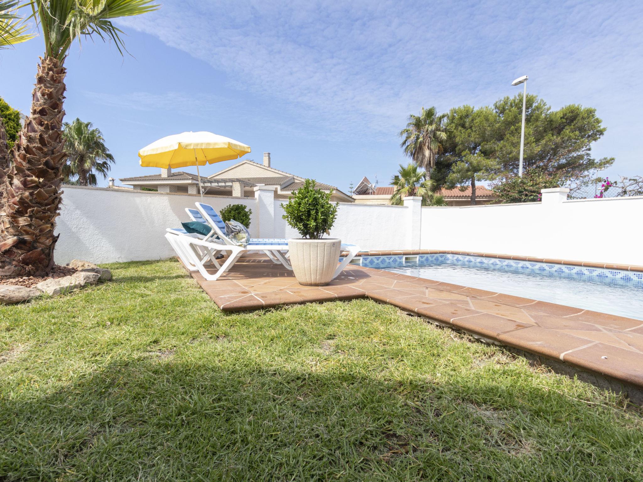 3,0"Golfa", 4-Zimmer-Haus 100 m2, im Erdgeschoss. Komfortabel und gemütlich eingerichtet: Wohn-/Esszimmer mit offenem Kamin, Esstisch, Digital-TV, Klimaanlage und Warmluftheizung. Ausgang zur Terrasse, zum Schwimmbad. 1 Doppelzimmer mit 1 franz. Bett (135 cm,