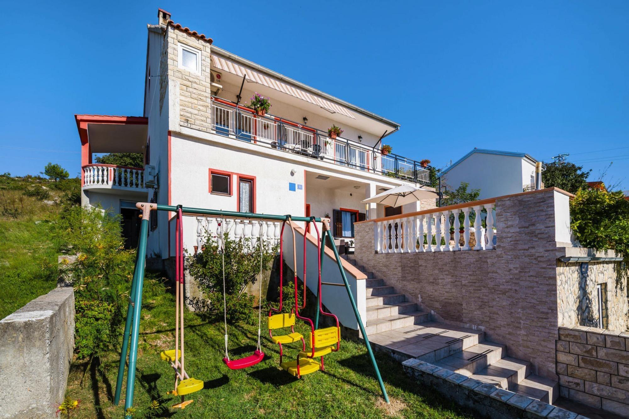 3,5"Valek", 5-Zimmer-Haus 170 m2 auf 2 Stockwerken. Wohn-/Esszimmer mit Sat-TV (Flachbildschirm), DVD und Klimaanlage. Offene Küche (4 Kochplatten, Backofen, Geschirrspüler, Toaster, Wasserkocher, Tiefkühler, elektrische Kaffeemaschine). Dusche/WC. Obergeschoss: