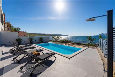 4,2Villa in Rovanjska mit Pool und Meerblick Haus: Modern und komfortabel eingerichtete Ferienvilla mit Pool im kleinen beschaulichen Dorf Rovanjska. Das Feriendomizil verfügt über 4 Schlafzimmer und 2 Bäder und bietet dadurch viel Platz für alle Mitreisenden.