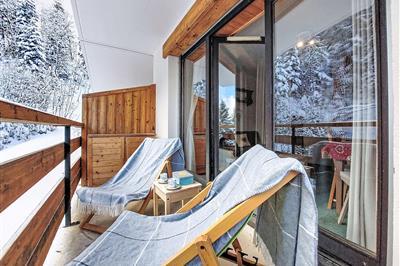 4,0"Les G'rets", 2-Zimmer-Wohnung 33 m2 im 1. Stock. Schön eingerichtet: Wohn-/Esszimmer mit TV (Flachbildschirm). Ausgang zum Balkon. Eingang mit 1 x 2 Etagenbetten (80 cm, Länge 190 cm). 1 Zimmer mit 1 franz. Bett (140 cm, Länge 190 cm). Ausgang zum Balkon.