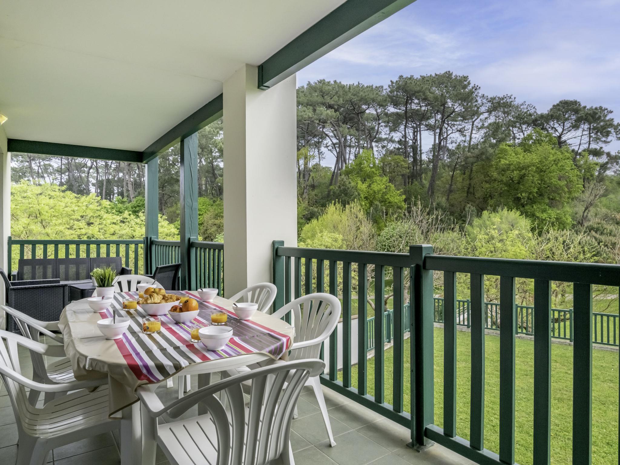 4,1"Domaine Iratzia", 3-Zimmer-Wohnung 45 m2 im 1. Stock. Komfortabel und schön eingerichtet: Wohn-/Esszimmer mit 1 Doppeldiwanbett (140 cm, Länge 190 cm), TV (Flachbildschirm). Ausgang zur Terrasse. 1 Zimmer mit 1 franz. Bett (1 x 160 cm, Länge 200 cm). Ausgang