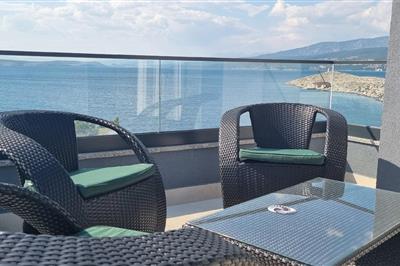 Dieses luxuriöse und moderne Apartment befindet sich in einem ruhigen Apartmentkomplex nur 30 Meter vom Meer entfernt, umgeben von Natur, vielen Buchten, Kieselstränden und Wanderwegen. Es bietet einen gemeinschaftlichen Salzwasserpool (36 m2), der von Mai