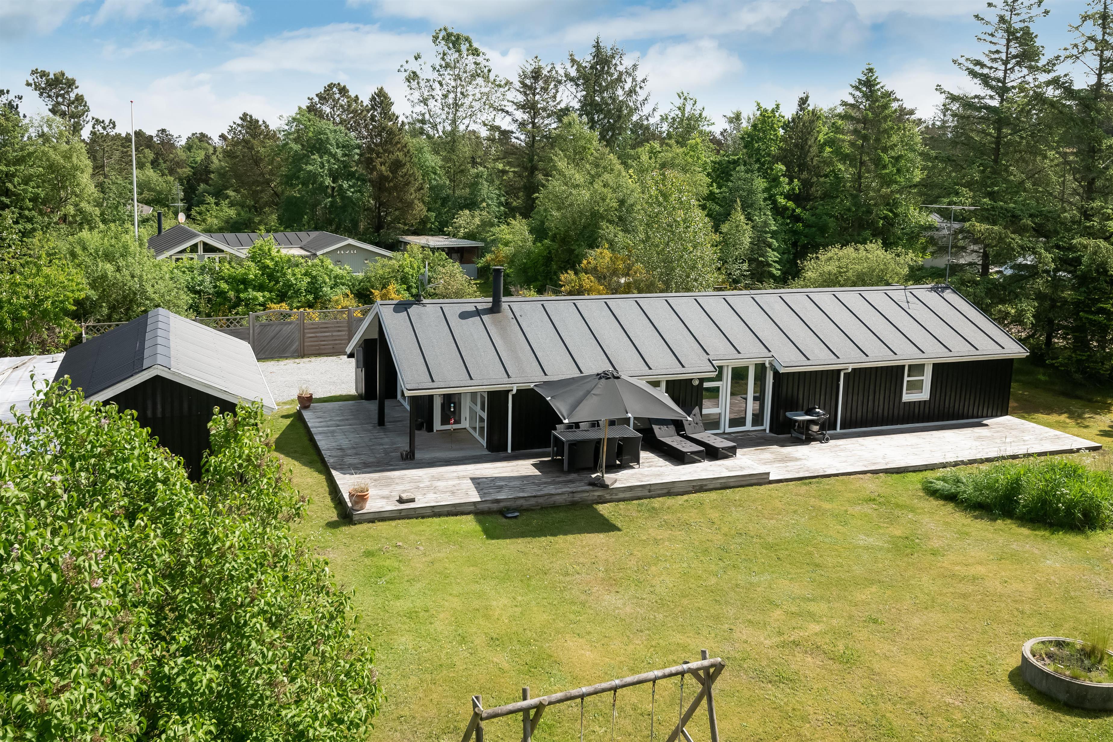 3,5Schönes Ferienhaus auf einem grossen Grundstück nur 250 m von gutem, kinderfreundlichem Sandstrand entfernt gelegen. Zum Haus gehört eine offene Terrasse mit Gartenmöbeln und gutem Windschutz sowie eine überdachte Terrasse. Gästehaus mit
