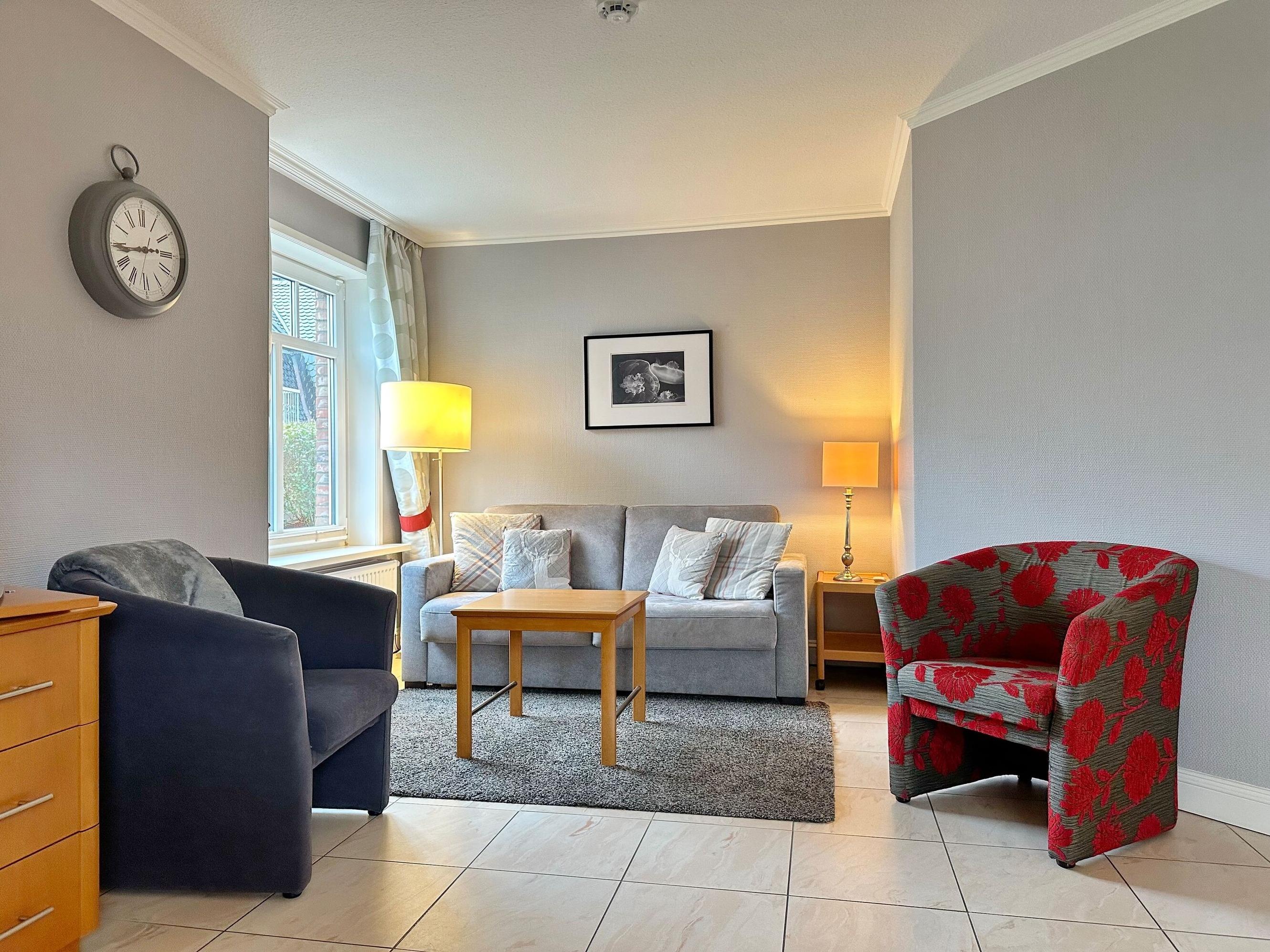 Ferienwohnung/App. für 4 Gäste mit 50m² in Westerland (308083) (Erdgeschoss) Hübsche 2-Zimmer-Ferienwohnung im Haus "Olympia IV" mit sonniger Südostterrasse, Strandkorb (Apr.-Okt.). Ca. 50m². Nichtraucherwohnung. EG: Wohnzimmer mit Küchenzeile mit