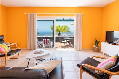 4,0Villa mit Loungebereich und privatem Pool Haus: Werden Sie Frieden und Harmonie in dieser romantischen Villa genießen? Die spektakuläre Aussicht auf die Küste von Puerto del Carmen wird Sie bezaubern. Das Wohnzimmer ist geräumig, warm und hell mit einem