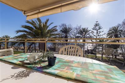 5,0"Marinada Cambrils", 3-Zimmer-Wohnung 65 m2 im 1. Stock. Vollständig renoviert im Jahre 2024, sehr modern eingerichtet: Wohn-/Esszimmer mit Digital-TV und Flachbildschirm. Ausgang zur Terrasse. 1 Zimmer mit 1 franz. Bett (150 cm, Länge 190 cm). Ausgang zur