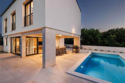 0,0Diese brandneue Villa befindet sich in einer kleinen, romantischen Stadt auf der Insel Krk. Sie besteht aus 3 Schlafzimmern, zwei Badezimmern und bietet Platz für max. 8 Gäste. Im Erdgeschoss befindet sich ein offener Wohnbereich mit Küche, Esszimmer und