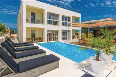 4,0Erleben Sie dies moderne Villa mit Pool, Garten und Meerblick von der Terrasse. Diese elegante Villa auf der Insel Vir lädt Sie zu einem unvergesslichen Urlaub ein. Der lichtdurchflutete Wohn- und Essbereich im Erdgeschoss ist der ideale Ort für geselliges