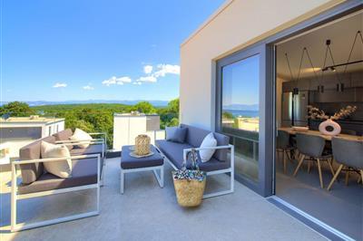 4,5Njivice ist ein beliebter Ferienort auf der Insel Krk. Die Villa liegt nahe am Meer aber trotzdem unweit vom Zentrum des Ortes. Das Interieur ist behaglich und ansprechend. Von den großzügigen Terrassen bietet sich ein atemberaubender Blick auf das Meer. Das